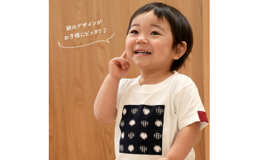 風のおくりもの子供Tシャツ・白(サイズ100)_久留米絣 子供 Tシャツ 白 サイズ 100 綿100% 白地 水玉格子柄 濃紺 左袖 赤 絣 アクセント 伝統工芸品 優しい 肌ざわり 衣料品 服 伝統 工芸品 洋服 キッズ 男の子 女の子 風のおくりもの お取り寄せ 福岡県 久留米市 送料無料_Qk011-3