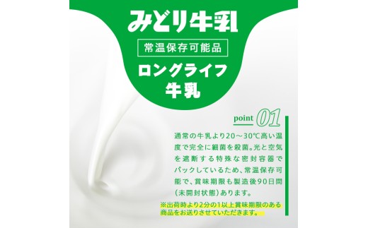 みどり牛乳(200ml×48本) 牛乳 ミルク 常温保存 長期保存 ロングライフ商品 乳飲料 乳製品 防災 常温 常温保存 大分県 佐伯市 【GT01】【九州乳業株式会社】