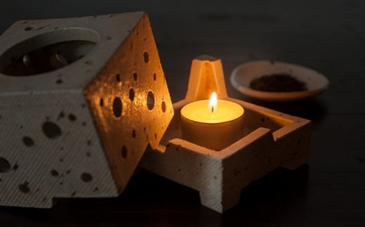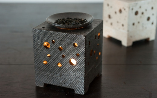 茶香炉 黒 【手作り 陶器 インテリア お茶 癒し キューブ 四角 贈り物】(H038120)