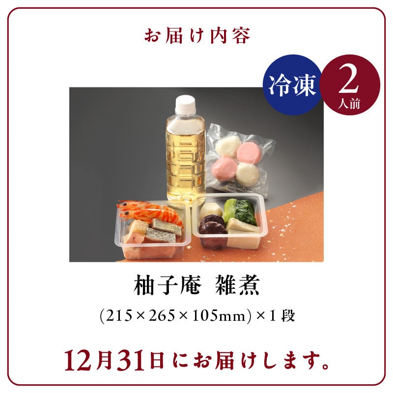 - 柚子庵 雑煮 おせちのお供に_12月31日 お届け 2人前 吟味した 食材 伝統の技 真心 博多雑煮 赤鶏 海老 鰤 紅白餅 栗糀 かつお菜 椎茸 六方里芋 だし汁 柚子 冷凍 食品 おかず 汁物 日本料理 お正月料理 ご当地 お取り寄せグルメ 年末配送 福岡県 久留米市 送料無料_Cx006
