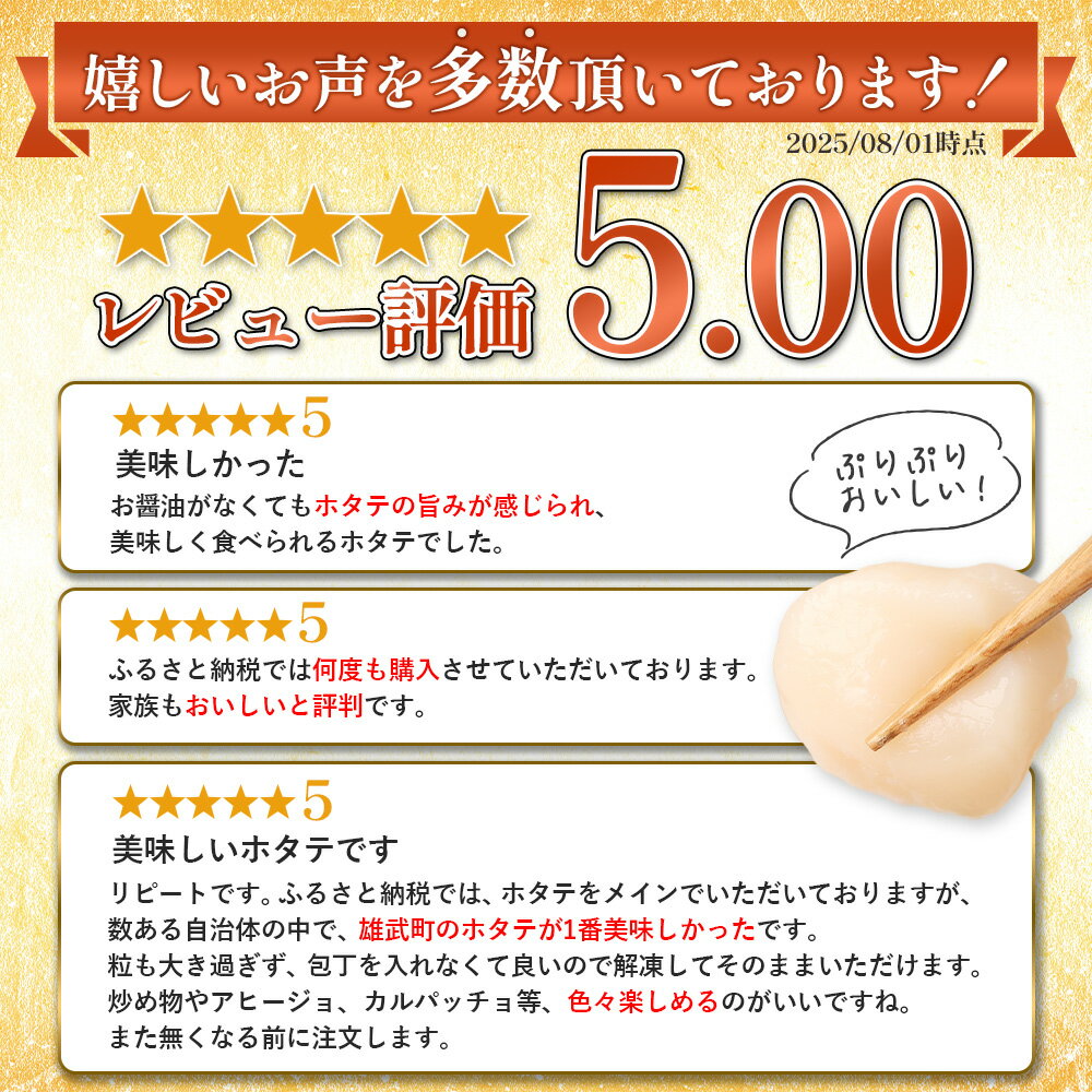 - オホーツク産 北海道 ホタテ ほたて 1kg 51粒 ~ 60粒 帆立 貝柱 刺身 冷凍 ふるさと納税 海鮮 魚介 雄武 雄武町