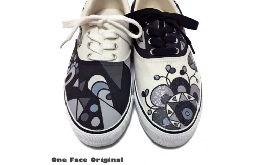 手描きスニーカー「ジョーヌQ」28.0cm アシンメトリー【受注制作】