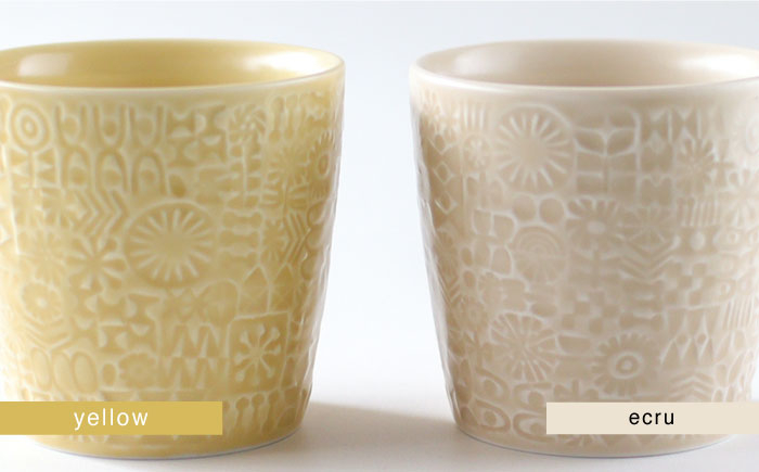 - 【波佐見焼】PATTERNED CUP ペア2色セット yellow + ecru【BIRDS’ WORDS】 [CF055]