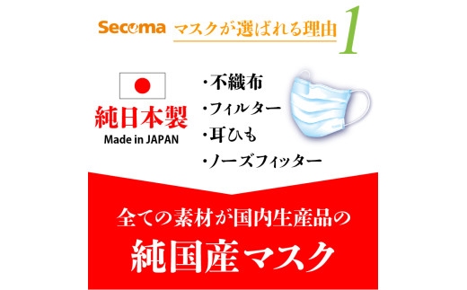 - Secoma 肌ざわりなめらか 国産不織布フィルターマスク 50枚入×5+7枚入×1 計257枚