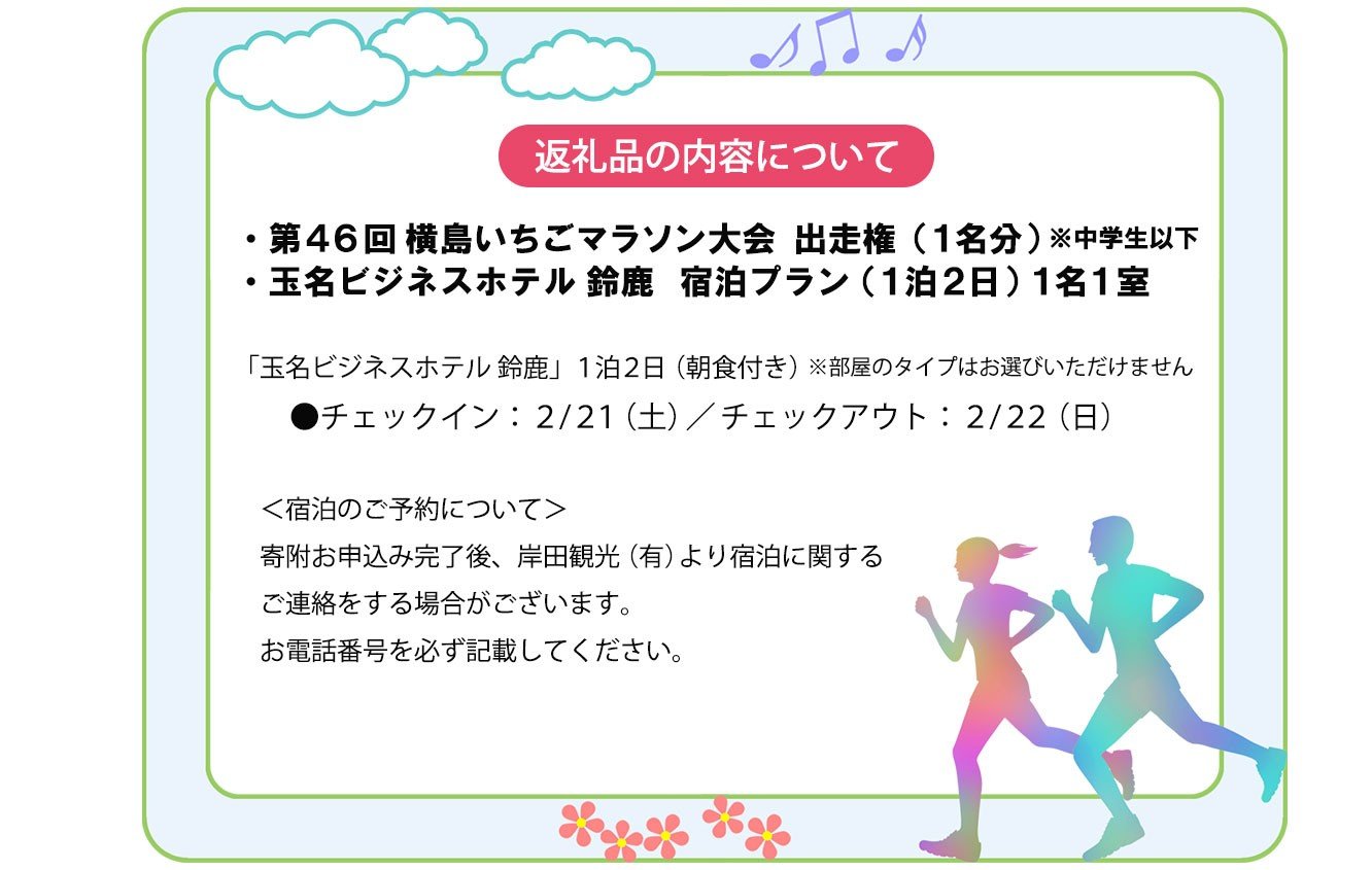 - 「 横島いちごマラソン大会 」 中学生以下 ( 1名分 ) 玉名ビジネスホテル鈴鹿 宿泊プラン ( 1泊2日 ) | イベント チケット マラソン 宿泊 宿泊券 一泊二日 熊本県 玉名市