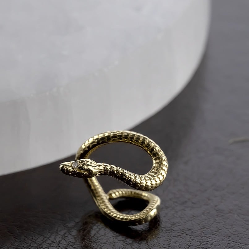 - ヘビ 蛇 18金 イヤーカフ イヤリング 片耳 ダイヤモンド 右耳用 イヤカフ 18k スネーク ゴールド ダイヤ K18 イエローゴールドk18 巳年 干支 お守り シンプル ジュエリー 普段 使い250226tp200yu SWAA285|レビューキャンペーン