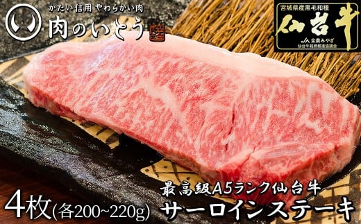 最高級A5ランク仙台牛サーロインステーキ 4枚