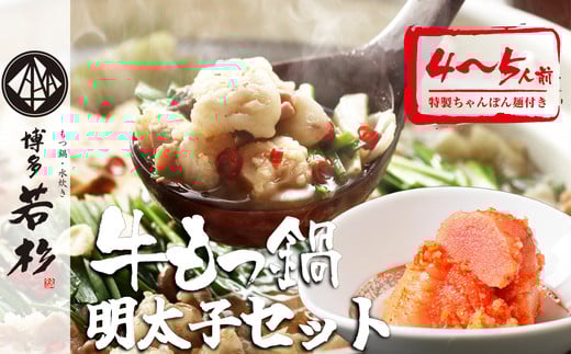 [ 博多若杉 ] 通販累計400万食突破!博多 若杉 国産牛 もつ鍋 ( 4~5人前 ) + 明太子 500g セット WK002-1