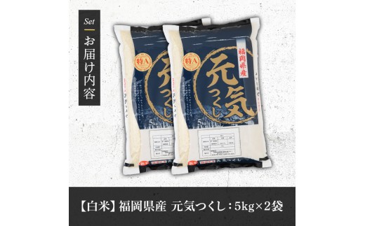 《白米》福岡県産ブランド米「元気つくし」(計10kg・5kg×2袋) 白米 米 お米 おこめ ごはん げんきつくし ご飯 常温 福岡県産 ブランド米 常温 常温保存 おにぎり おむすび お弁当 ライス【朝ごはん本舗】as05-055