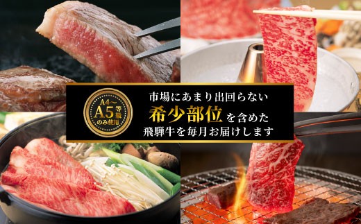 飛騨牛 希少部位 定期便 全6回 計1.86kg 2人前相当 すき焼き しゃぶしゃぶ ステーキ 焼肉 BBQ リブロース ランプ イチボ とも三角 ミスジ リブロースステーキ 贅沢 贈り物 6ヶ月 定期 おすすめ レア 人気 飛騨 ブランド牛 牛肉 肉 肉のひぐち