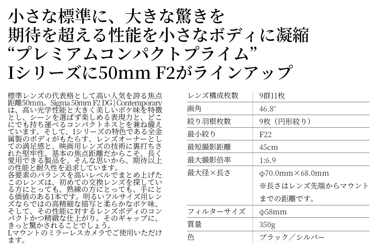 SIGMA 50mm F2 DG | Contemporary【Lマウント】(ブラック/シルバー)
