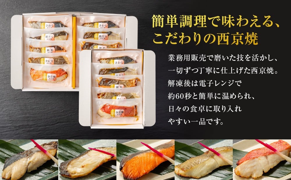 西京焼 匠(銀だら、金目鯛、さわら、銀鮭、カレイ各1切)【1427026】