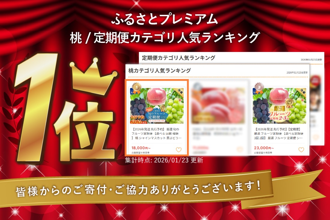 - 【2026年発送 先行予約】 厳選 旬のフルーツ定期便 【選べる 回数 種類 】 桃 シャインマスカット 黒ぶどう 果物 フルーツ くだもの 旬 もも ぶどう 高級 山梨 富士吉田 フルーツ 富士吉田