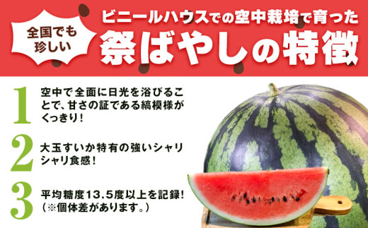 すいか【2026年先行予約】贅沢な甘さとシャリ感 空中育ちの大玉すいか 祭ばやし 6kg以上 1玉 そうがわ農園 《2026年6月下旬-8月上旬頃出荷》 和歌山県 日高川町 スイカ 西瓜 すいか 大玉