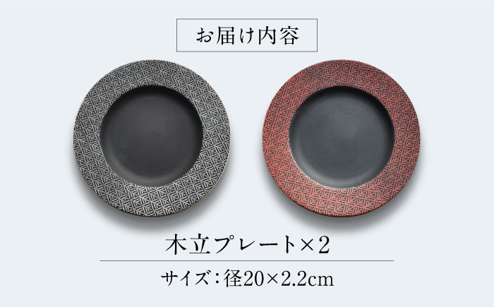 【美濃焼】 PITCH BLACK 木立プレート ホワイト × レッド ペア セット 多治見市 / 丸健製陶 セット 皿 陶磁器 [TAY062]