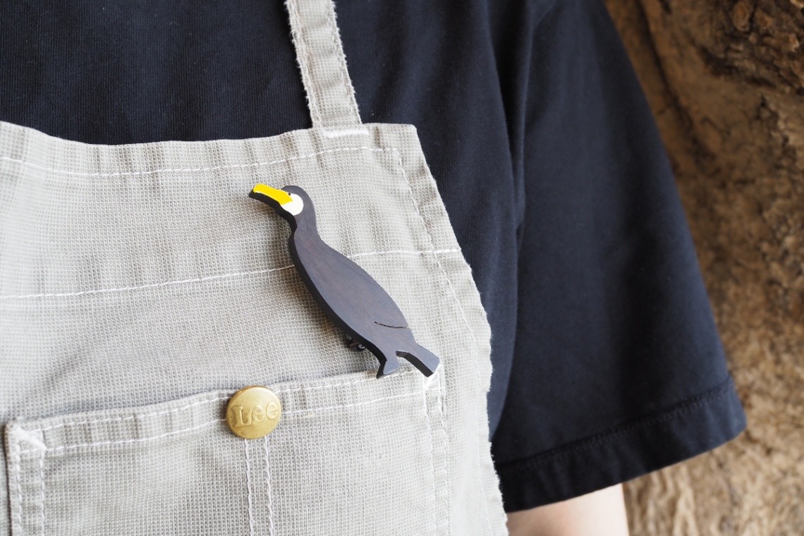 - 鵜と鮎のブローチセット 草木染めのコースター付き