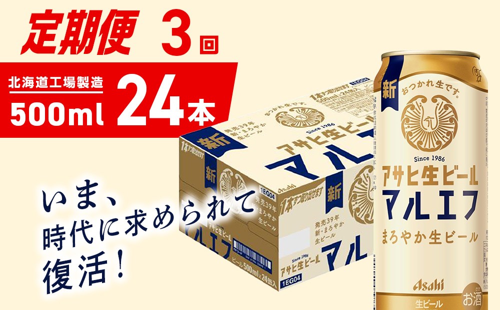 - 【定期便 3ヶ月】アサヒ生ビール≪マルエフ≫<500ml>24缶 1ケース 北海道工場製造 缶ビール ビール マルエフ まろやか 北海道ビール工場製造 ビール定期便 アサヒビール 北海道 札幌市