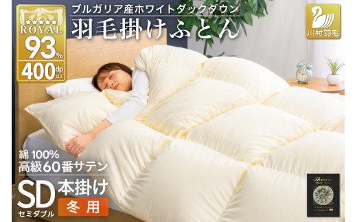 - 羽毛布団 本掛け ホワイトダックダウン93% セミダブル 1.5kg 60番手サテン 綿100% アイボリー ブルガリア産 冬用 布団 ふとん 羽毛 羽毛掛け布団 寝具 ロイヤルゴールド 400dp 収納袋付 日本製 国産 増量 無地 [川村羽毛 山梨県 韮崎市 20745167]