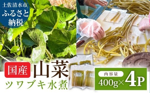 ツワブキ 水煮 400g×4パック 1.6kg 1.6キロ 山菜 下処理済み 野菜 春の食材 煮物 佃煮 料理 石蕗 食品 お取り寄せ 真空 冷凍 配送【R01450】