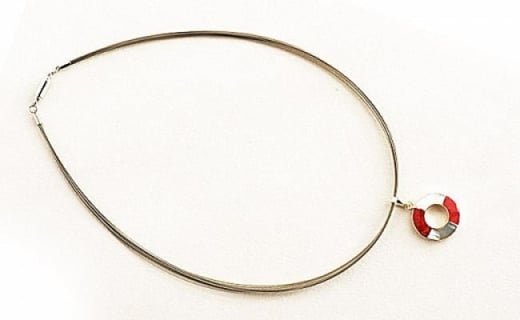 白蝶貝とローズコーラルを素材にしたコードペンダント「貝工房かざはな」【NC-8】