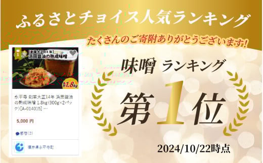 【4回お届け】永平寺 創業大正14年 浜田醤油の熟成味噌 1.6kg(800g×2パック)【お届け対象月 10月,1月,4月,7月】[C-014001] / お味噌 味噌汁 味噌 みそ 2個 天然熟成 米みそ 米味噌 米糀 米麹 糀味噌 麹味噌 麹 おみそ 米麹味噌 米糀味噌 米麹みそ 米糀みそ 大豆