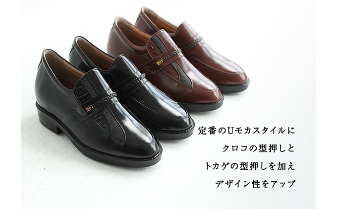 - ビジネスシューズ 本革 革靴 カンガルー革 紳士靴 デザインモカ 7cmアップ シークレットシューズ No.235 ブラック [№5990-0356]