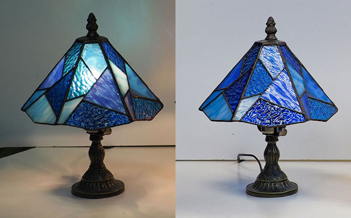 - スタンド型 ランプ 「 色彩 」 青 / 照明 ライト ランプ ステンドグラス / 大村市 / ステンドグラス工房ウォークオン [ACZT012]