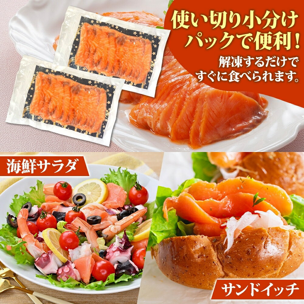 - 【ふるさと納税】燻製仕立て スモークサーモン 小分け 200g 選べる 内容量 400g / 600g / 800g 香ばしい スモーク 風味 サーモン おつまみ 晩酌 お酒のあて 副菜 惣菜 ご飯のお供 北国からの贈り物 海鮮 水産加工品 お取り寄せグルメ 大阪府 泉佐野市 送料無料