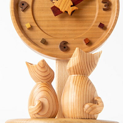 - 【ふるさと納税】【置き掛け兼用】 猫と魚の時計丸大 【ハンドメイド】【1593601】