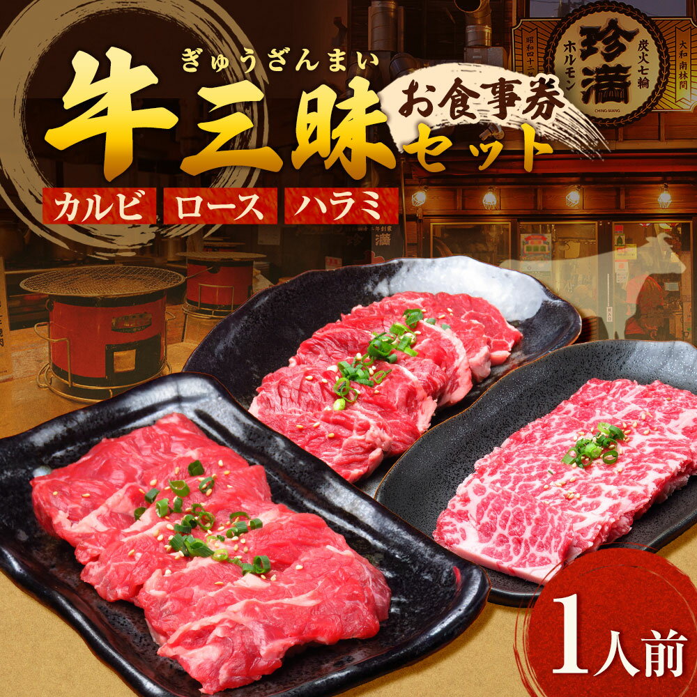 【ふるさと納税】 牛三昧(ぎゅうざんまい)セット お食事券 焼肉 牛カルビ 牛ロース 牛ハラミ 各1人前 チケット 食事券 ディナー 神奈川県 大和市 送料無料