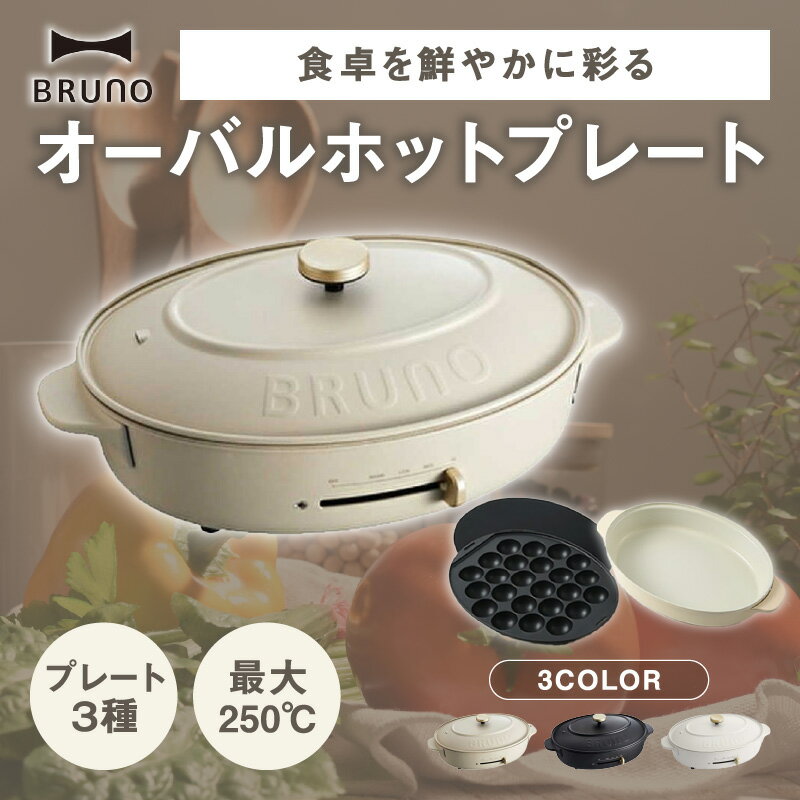 【ふるさと納税】BRUNO オーバルホットプレート プレート3種(たこ焼き 平面 鍋) BOE053 【選べるカラー グレージュ / ブラック / ホワイト】 ブルーノ ホットプレート プレート 調理家電 おしゃれ 新生活 パーティー ギフト プレゼント 贈り物 お友達 家族 東京 新宿