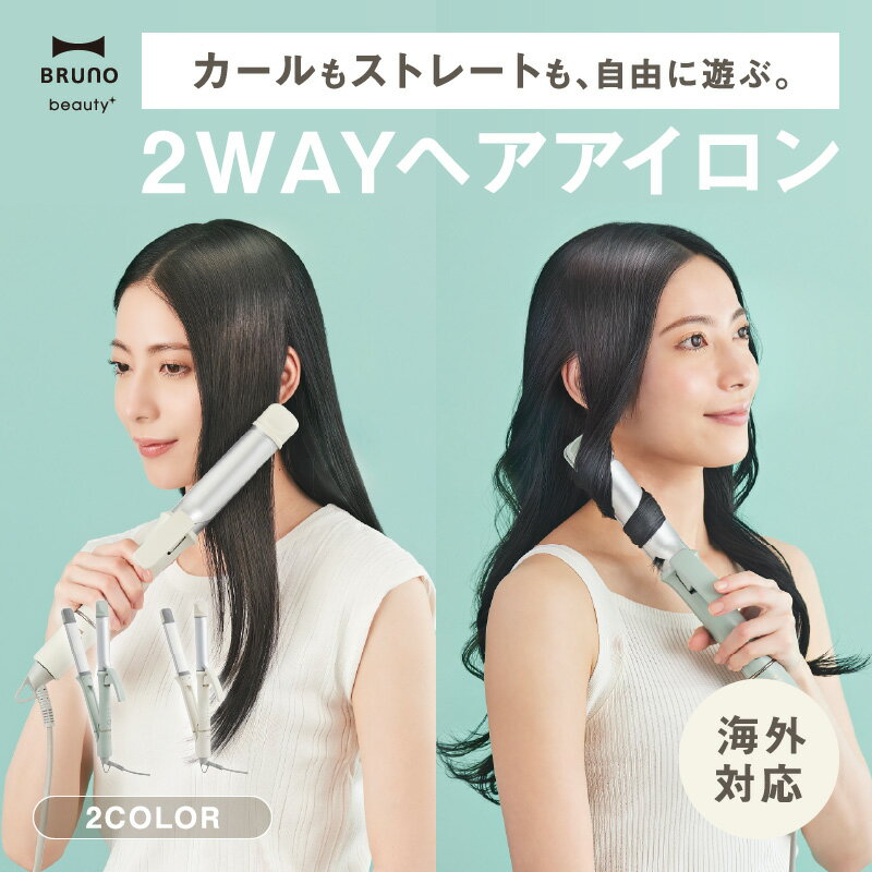 - 【ふるさと納税】BRUNO 2WAYヘアアイロン BOE147 【選べるカラー グリーン / エクリュ】 ブルーノ 2WAY ヘアアイロン ストレート カール リペアイオン 耐熱ポーチ 旅行 持ち運び おしゃれ ヘアケア 美容 家電 スタイリング ギフト 贈り物 プレゼント お友達 家族 東京 新宿