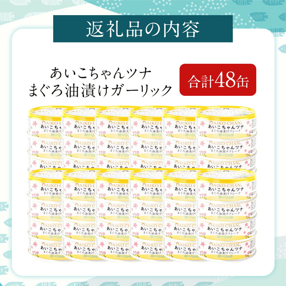 - 【ふるさと納税】あいこちゃんツナガーリック 70g×48缶 缶詰 ツナ缶 備蓄 無添加 | 食品 加工食品 缶詰 瓶詰 魚貝類 ツナ缶 備蓄 無添加 静岡市 マグロ 油漬け 人気 和食 保存食 災害対策 長期保存 栄養豊富 健康志向 シーフード 人気