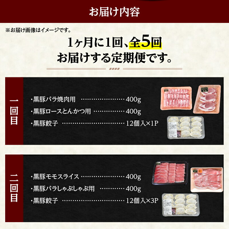 - 【ふるさと納税】<国産>【定期便】鹿児島黒豚ふるさと定期便 <全5回お届け> 肉 黒豚 豚肉 しゃぶしゃぶ トンカツ 鍋 焼き肉 餃子 ギョーザ 冷凍 和田養豚 鹿児島 鹿屋市 おすすめ ランキング プレゼント ギフト