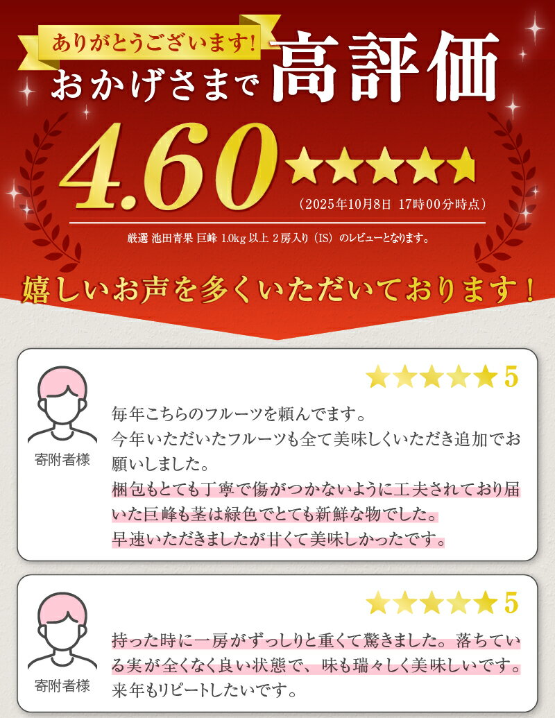 - 【ふるさと納税】 巨峰 2026年 先行予約 選べる 発送年 2房 1kg 種無し 果物 厳選 池田青果 2025年 山梨県産 産地直送 旬 フルーツ ぶどう ブドウ 葡萄 くだもの 濃厚 甘い 大きい 果実 甲州市産 期間限定 数量限定 贈答 ギフト 家庭用 8~10月 発送 (IS) 【B-468】