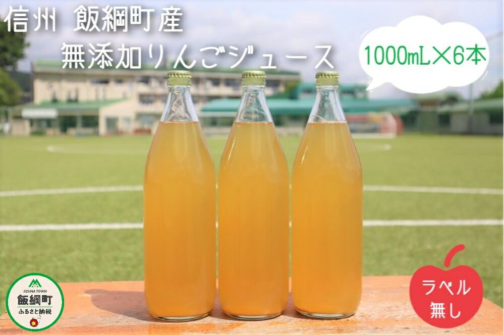 - 【ふるさと納税】 りんごジュース 果汁100% ( ラベル無し ) 1000ml × 6本 沖縄県への配送不可 長野県 飯綱町 〔 飲料 果汁飲料 りんご リンゴ 林檎 ジュース ラベルレス 信州 18000円 〕