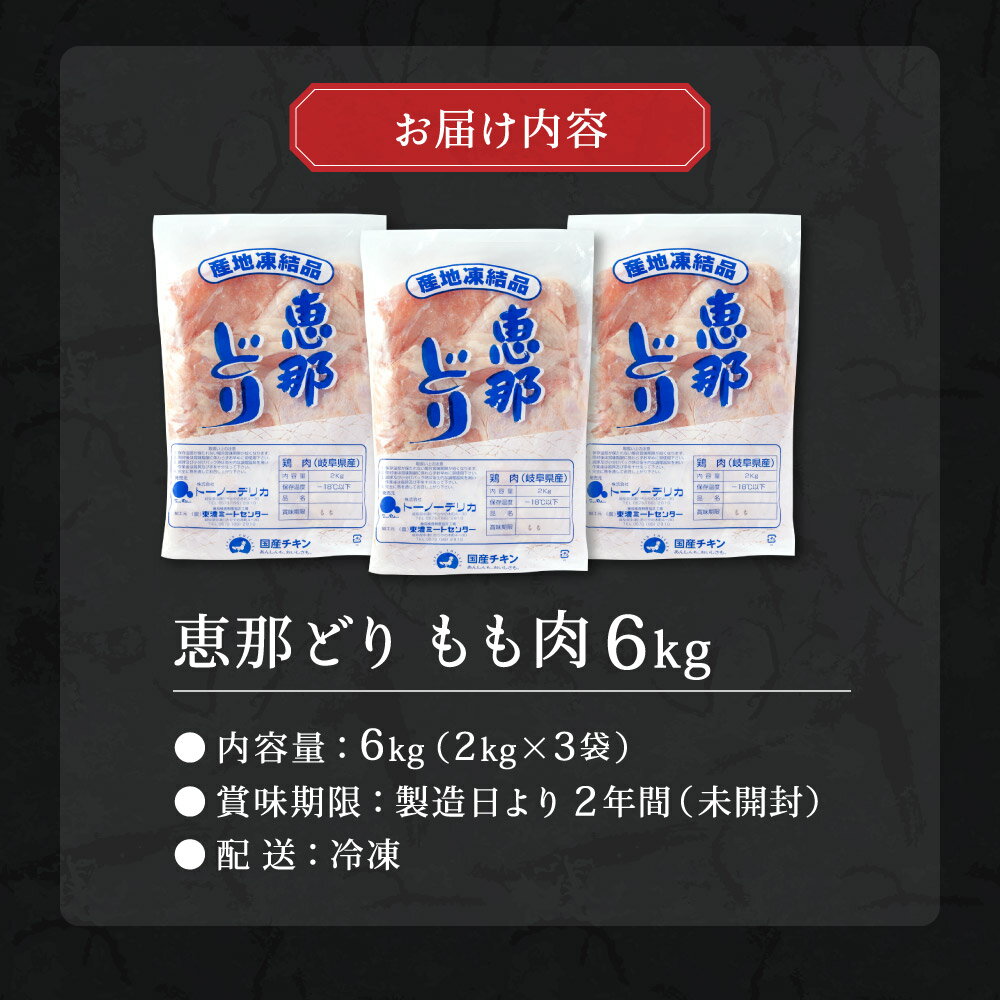 - 【ふるさと納税】恵那どり もも肉 6kg (2kg×3袋) 冷凍 鶏肉 とり肉 鳥 鶏 肉 業務用 原料肉 銘柄鶏 若どり 大容量 モモ ヘルシー【配送不可地域:離島・一部山間部等】