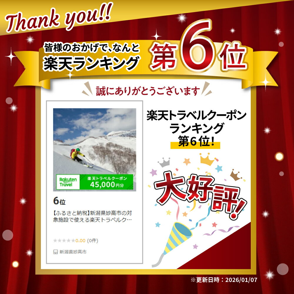 - 【ふるさと納税】新潟県妙高市の対象施設で使える楽天トラベルクーポン 寄付額150,000円/【3年間利用可能】旅行 新潟 トラベル 旅行券 宿泊 ギフト 温泉 宿泊券 旅館 家族 観光 ホテル リゾート クーポン スキー スノーボード 登山 キャンプ グルメ 予約