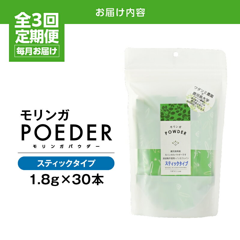 - 【ふるさと納税】【3ヶ月定期便】モリンガパウダースティックタイプ 54g[30本入り(1.8g/本)]×3回 計162g 国産 鹿児島 農薬不使用 キセキの木 生命の木 スーパーフード モリンガ ワサビ科 ビタミン ミネラル ポリフェノール 栄養素 豊富 健康 自然栽培 【ワダツミ農園】