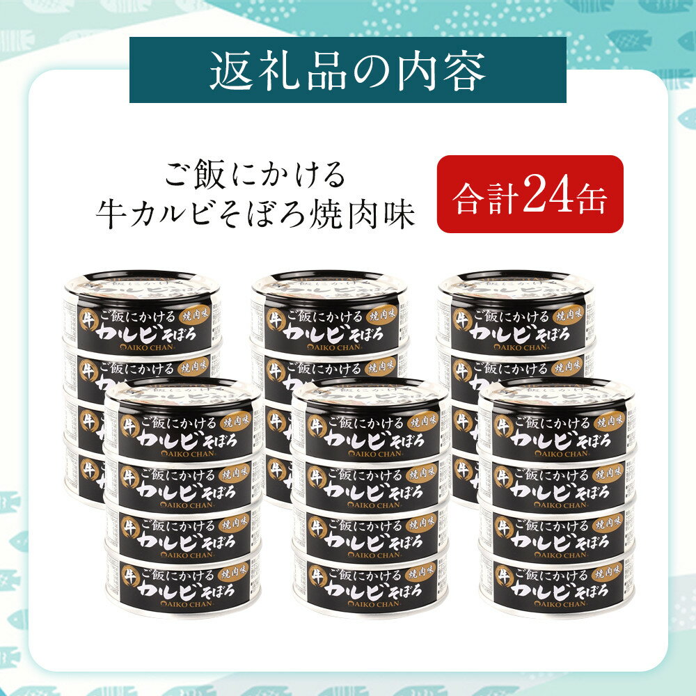 - 【ふるさと納税】あいこちゃんご飯にかける牛カルビそぼろ焼肉味60g×24缶 缶詰 備蓄 無添加 | 食品 加工食品 缶詰 瓶詰 惣菜 備蓄 無添加 静岡市 カキ 人気 和食 保存食 災害対策 長期保存 栄養豊富 健康志向 シーフード 人気
