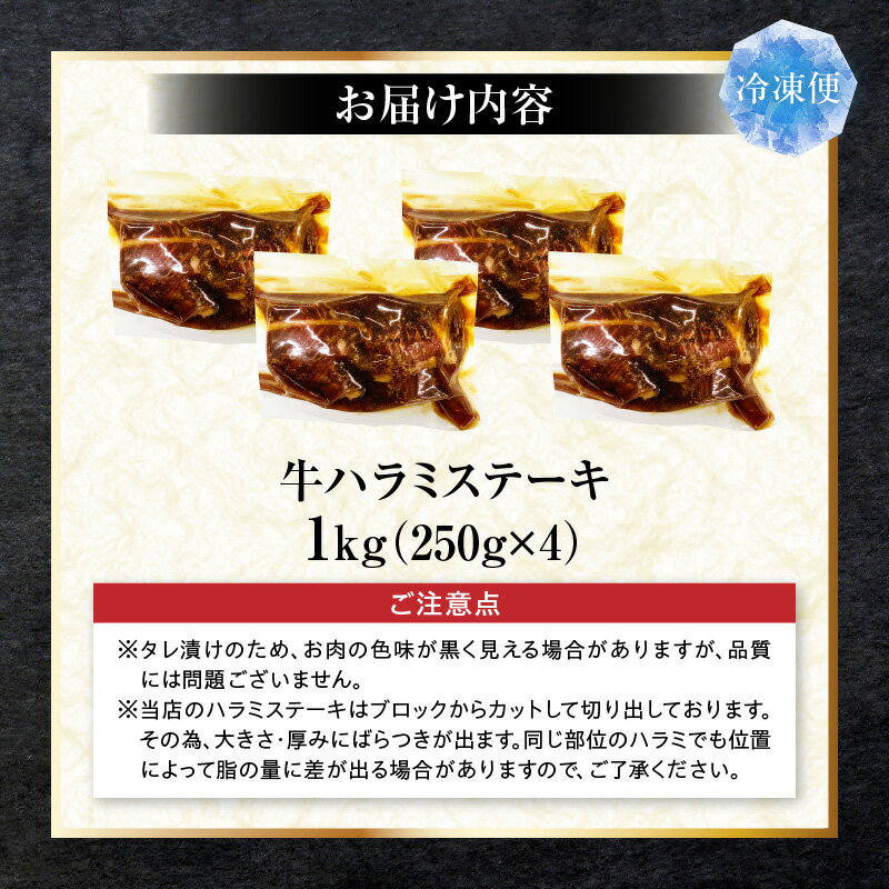 - 【ふるさと納税】満足赤身 牛ハラミステーキ 4枚セット(合計1kg) 厚切り 秘伝のタレ漬け 焼く 牛肉 焼肉 タレ 漬け 秘伝 柔らかい 味付き やきにく ハラミ 希少 小分け 厚切り 冷凍 BBQ 香川県 三木町 国産 牛 ステーキ 赤身 ギフト 食品 お取り寄せ 贈り物
