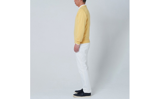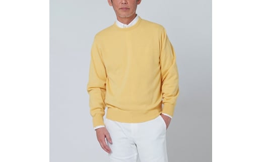 日本製 カシミヤ100% クルーネック 黄色 Lサイズ [2615]