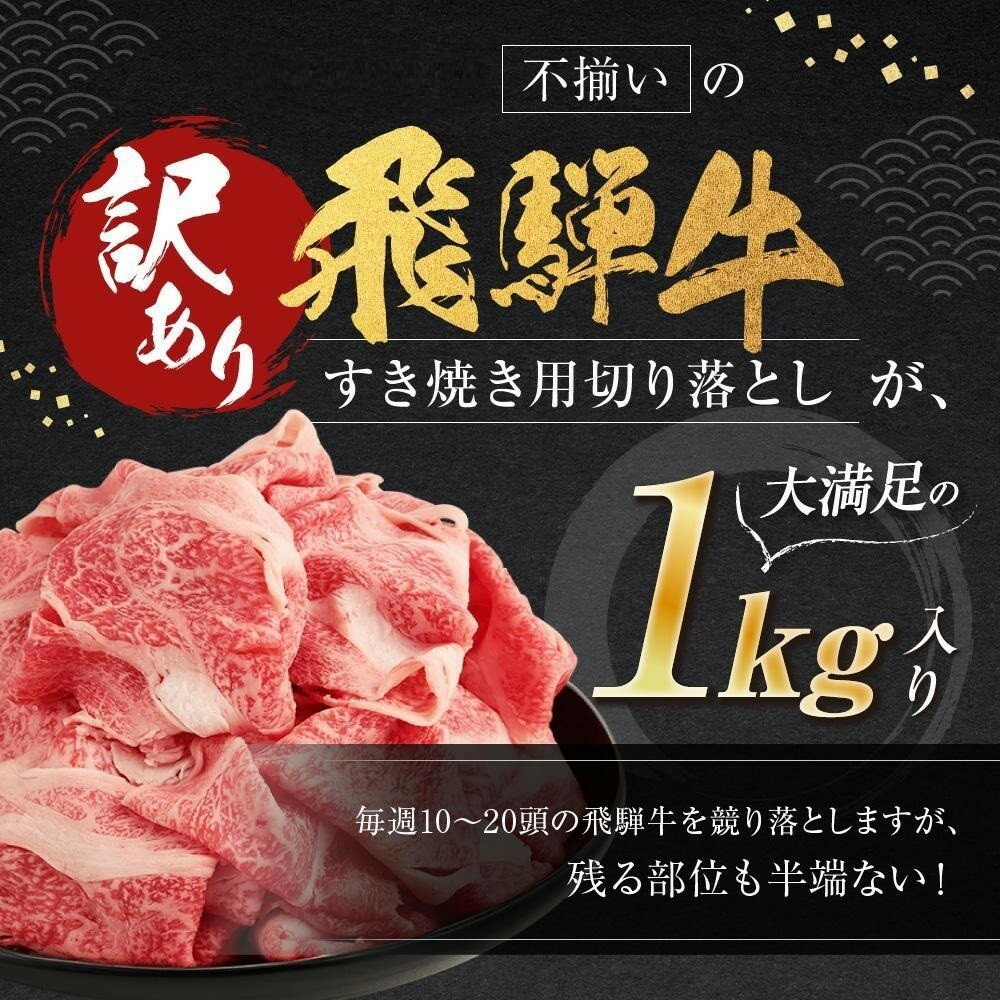 - 【ふるさと納税】訳あり 飛騨牛すき焼き用切り落とし(不揃い・大容量)1kg | 通常配送・定期便が選べる 切り落とし 小分け 鍋 正月 肉の匠家 BV026VP | 飛騨牛 肉 お肉 にく 食品 人気 おすすめ 送料無料 ギフト