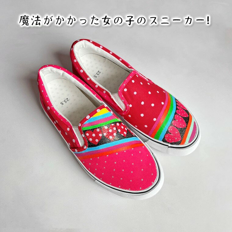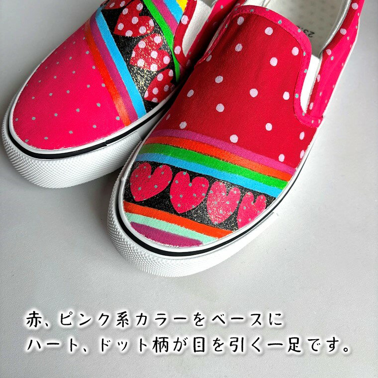 - 【ふるさと納税】スニーカー ガールR 手描き ハート柄 ドット柄 スリッポン レディース ワイズ 2E 22.0~28.0cm【受注制作】