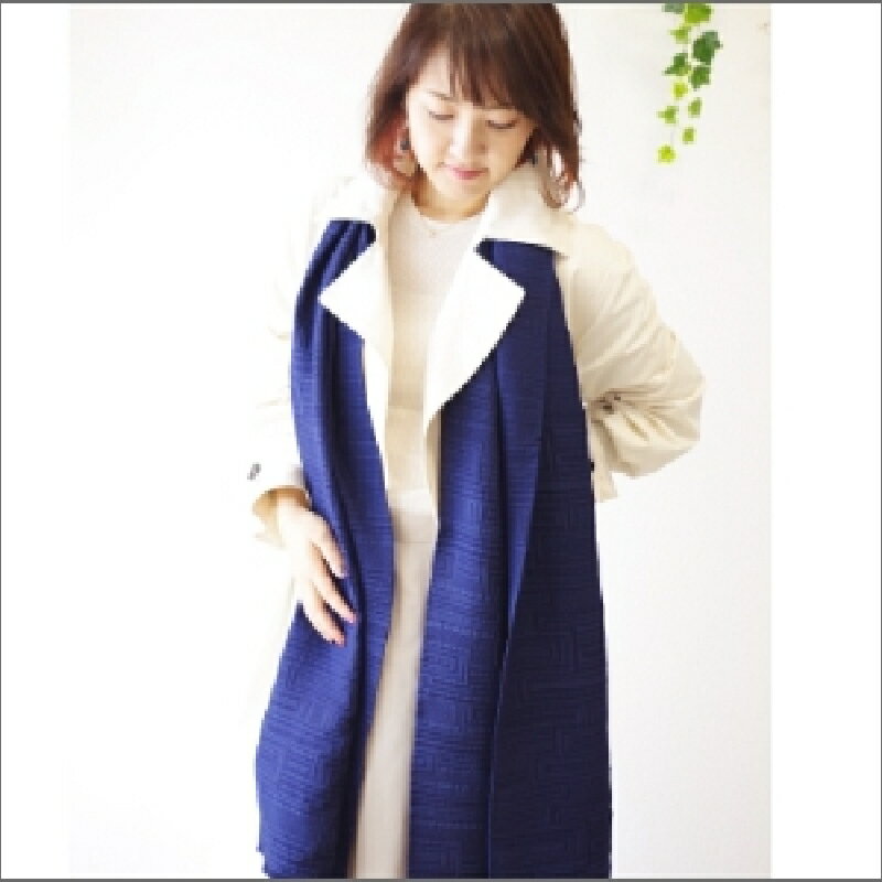【ふるさと納税】フィルタンゴ ストール【洗える丹後ちりめんのシルク】幾何柄 ネイビー ギフトにもおすすめ。 シルク 丹後ちりめん ファッション 洗える 贈り物 記念日 ギフト プレゼント ふるさと納税シルクストール ふるさと納税 ストール メンズストール