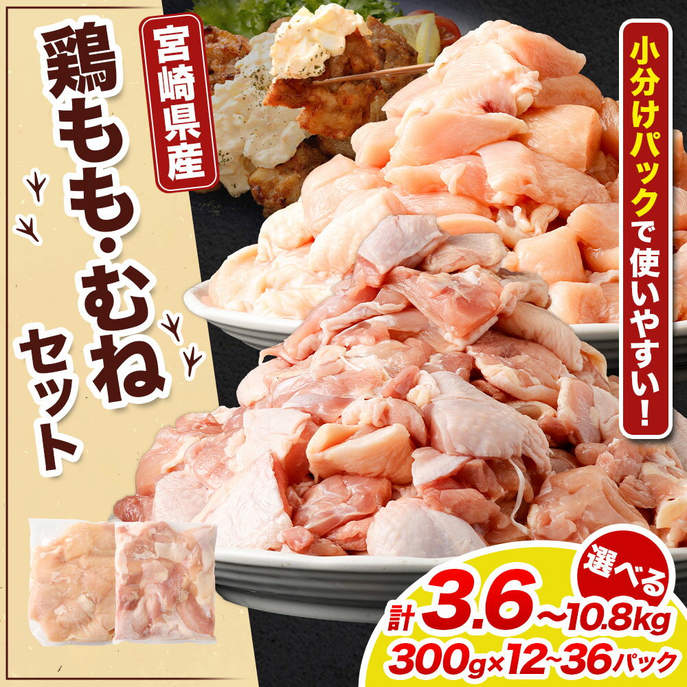 【ふるさと納税】【小分け】【大容量】<鶏もも肉・鶏むね肉セット 各300g(各6パック 計3.6kg/各12パック 計7.2kg/各18パック 計10.8kg)翌月末迄に順次出荷 鶏肉 お肉 モモ肉 ムネ肉 冷凍 宮崎県産 国産 宮崎県 高鍋町 送料無料