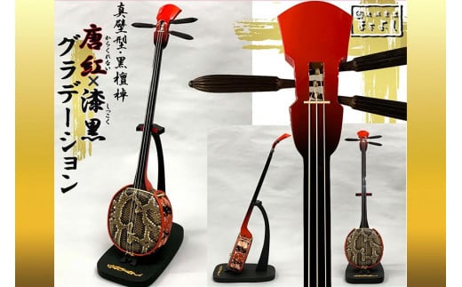 【琉球楽器またよし】唐紅×黒 グラデカラー三線(黒檀棹)