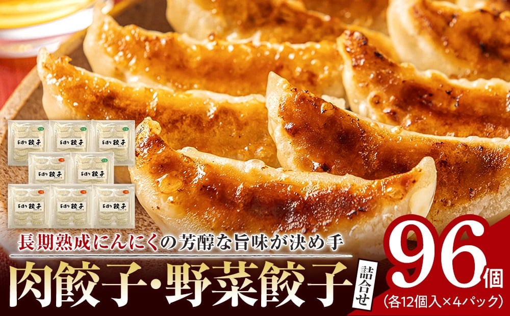 長期熟成にんにくの芳醇な旨味が決め手 肉餃子・野菜餃子詰合せ 96個入り (肉餃子・野菜餃子 各12個入×4パック)