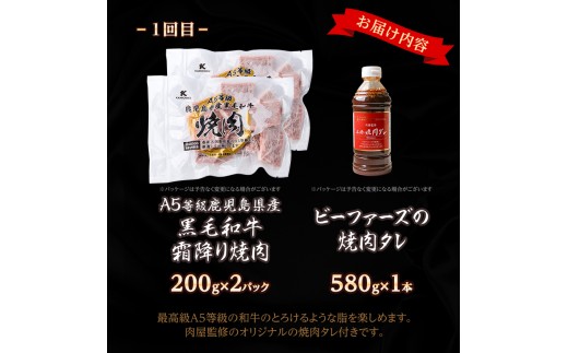 - <毎月定期便>黒毛和牛焼肉お楽しみ定期便1.2kg(枕崎市) DD0-0029 全3回【4072115】