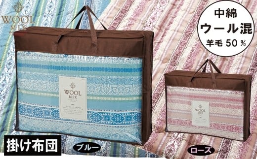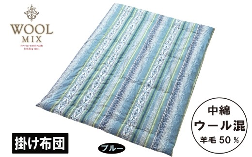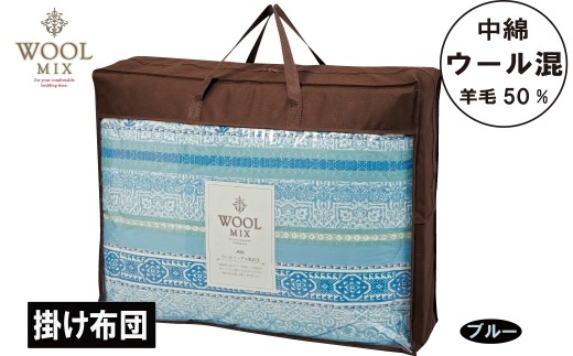 - 【G0683】【シングル】掛け布団(ウール50%混わたを中綿に使用したやさしい暖かさの掛け布団)(サイズ150×200cm):配送情報備考 ブルー